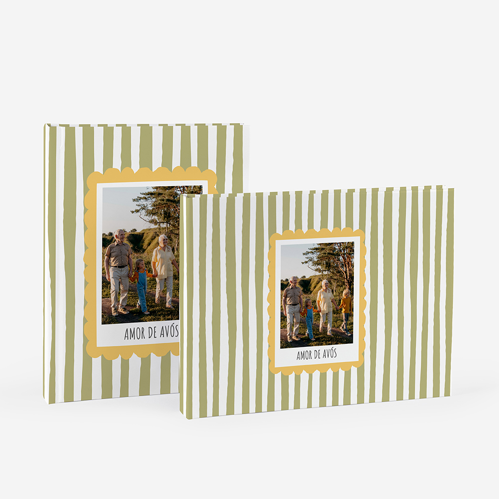 A capa rígida em cartão duro oferece proteção adicional e um acabamento elegante ao teu álbum.